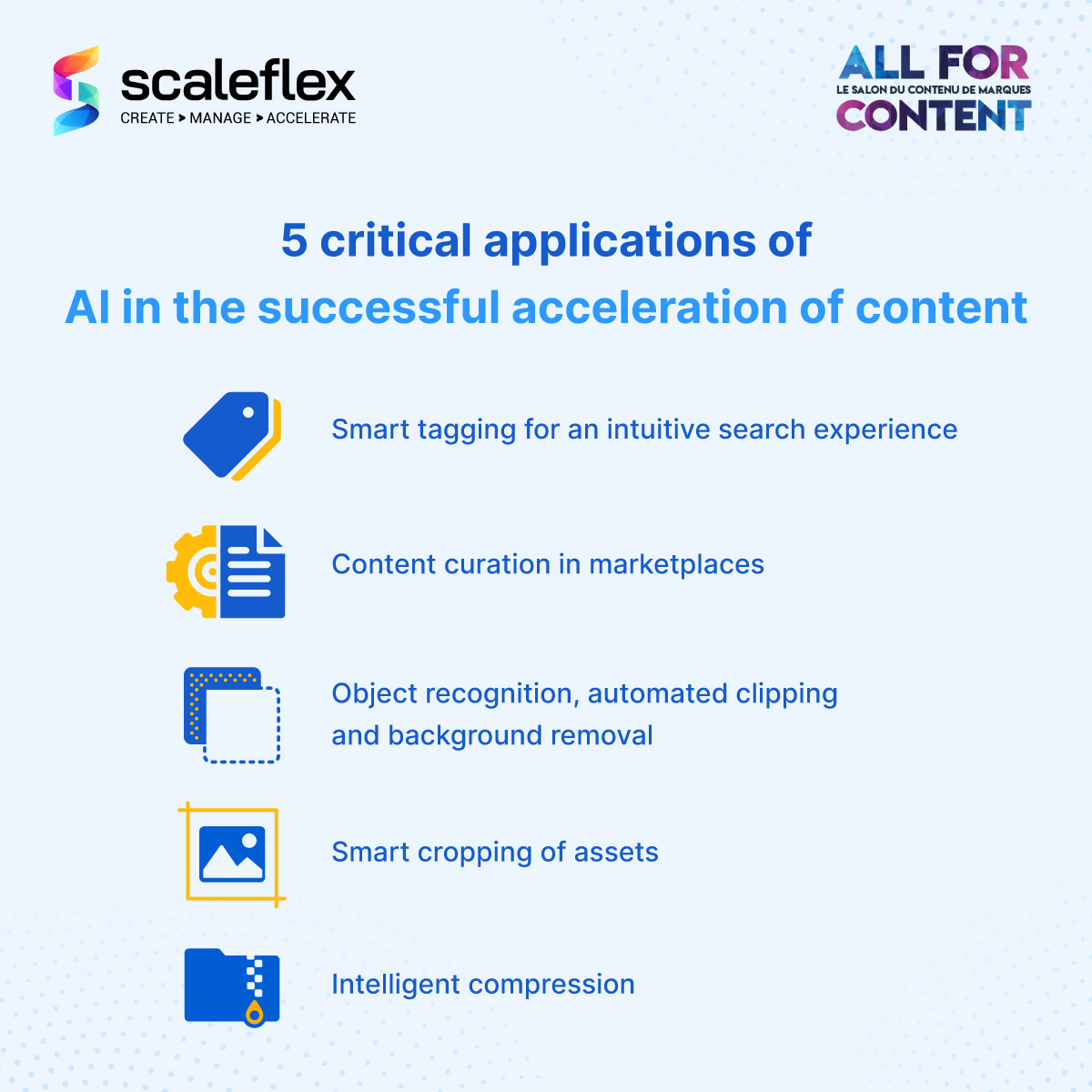 Laura Berger, Scaleflex’s Partnership Manager, had the pleasure to present a workshop titled, ‘5 use cases of Artificial Intelligence (AI) to accelerate your content factory’, showcasing how Scaleflex’s Digital Asset Management (DAM) customers benefited from content automation.